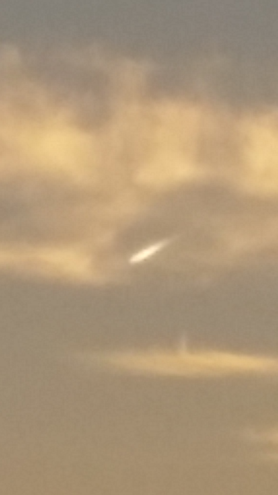 Le témoin a décrit l’objet comme étant rond et émettant une traînée, ce qui a attiré son attention. L’observation a duré environ dix minutes, durant lesquelles l’objet a filé vers le bas avant de disparaître derrière les bâtiments environnants. Le témoin a pris une photo du ciel, où l’on peut voir le chemtrail laissé par le gros porteur, ainsi qu’une version zoomée de l’image qui met en évidence l’objet en question. Il a également enregistré une vidéo de l’événement, bien que la qualité soit compromise en raison de son déplacement rapide, car il se sentait pressé.