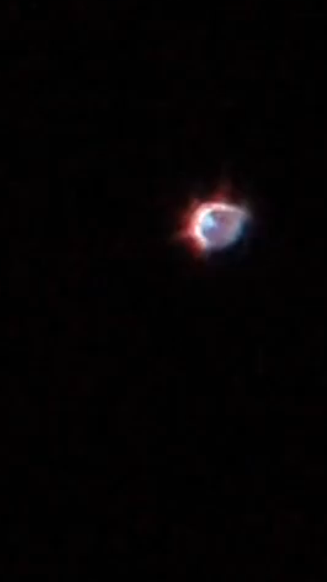 La trajectoire de l’objet était orientée du nord-ouest vers le sud-sud-est. Après la première observation de la boule blanche, j’ai vu un demi-cercle multicolore, qui variait en forme et en couleur, incluant des teintes blanches très brillantes, orangées, ainsi que des nuances sporadiques de violet et de vert. Ce phénomène multicolore m’a semblé avoir la taille d’une balle de ping-pong, et je soupçonne qu’il se situait en haute atmosphère, possiblement dans l’ionosphère à une altitude de 80 à 100 km.
