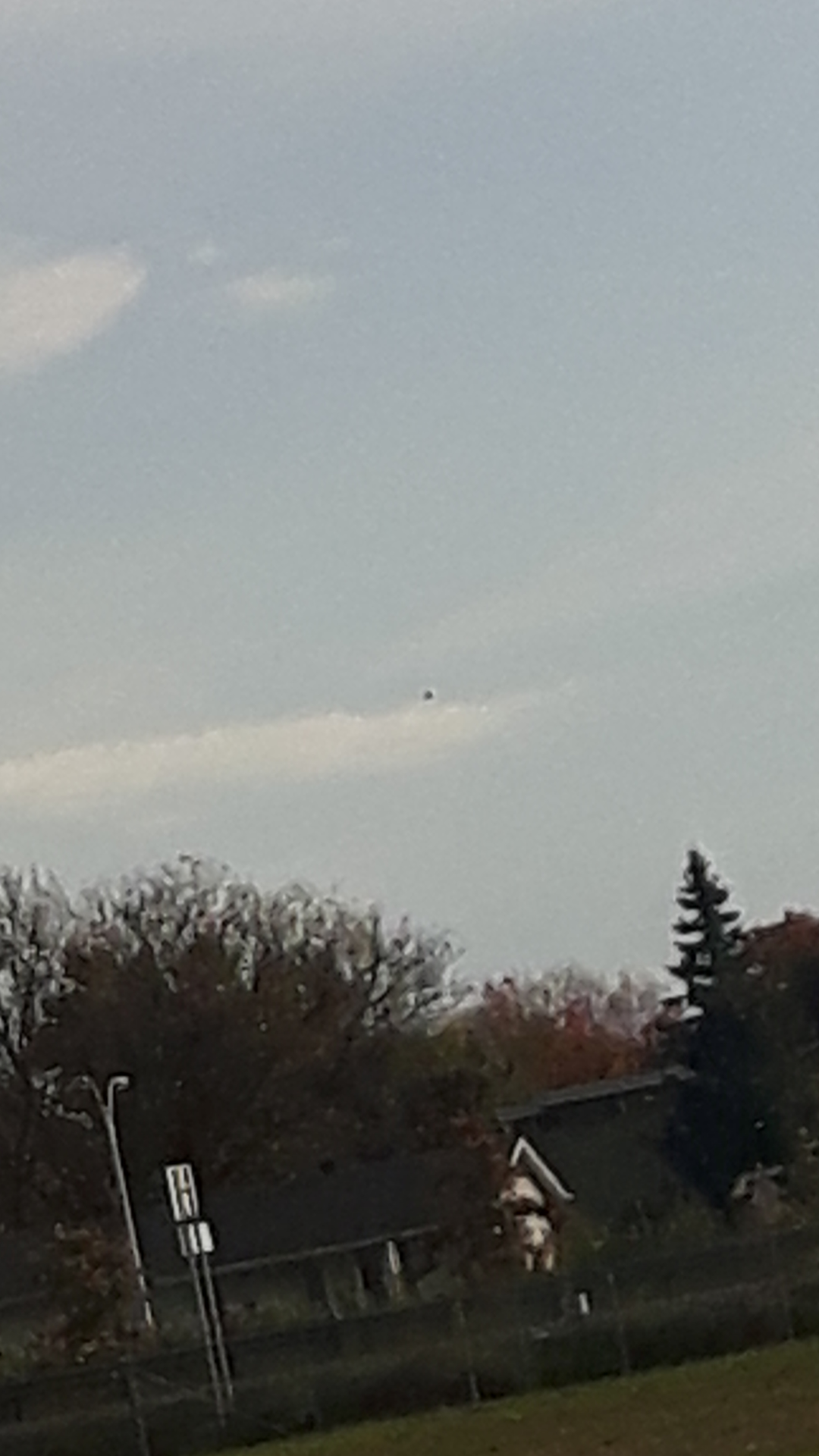 Le témoin a d’abord aperçu l’objet en arrivant dans le stationnement et a décidé d’arrêter son véhicule pour mieux l’observer. Après avoir stationné plus près du magasin, l’objet était toujours dans la même position, sans montrer aucun signe de mouvement. Le témoin a tenté de photographier l’objet, mais la qualité de la résolution n’était pas satisfaisante. En attendant, les nuages se sont dissipés, permettant une meilleure visibilité de l’objet, qui miroitait sous les rayons du soleil.