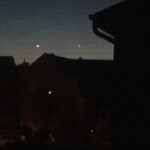 Au cours de l’observation, l’objet le plus éloigné a effectué un déplacement linéaire avant de disparaître de son champ de vision, se cachant derrière la maison des voisins immédiats. L’autre objet, quant à lui, est resté immobile, sans variation de luminosité, de couleur ou de forme, et ne clignotait pas. Les clichés rapprochés montrent un objet circulaire à l’intérieur d’un halo lumineux. Après avoir pris les photos, le témoin a appelé sa conjointe pour qu’elle vienne voir, mais lorsque celui-ci s’est retourné pour vérifier la présence de l’objet, il avait disparu en un instant.