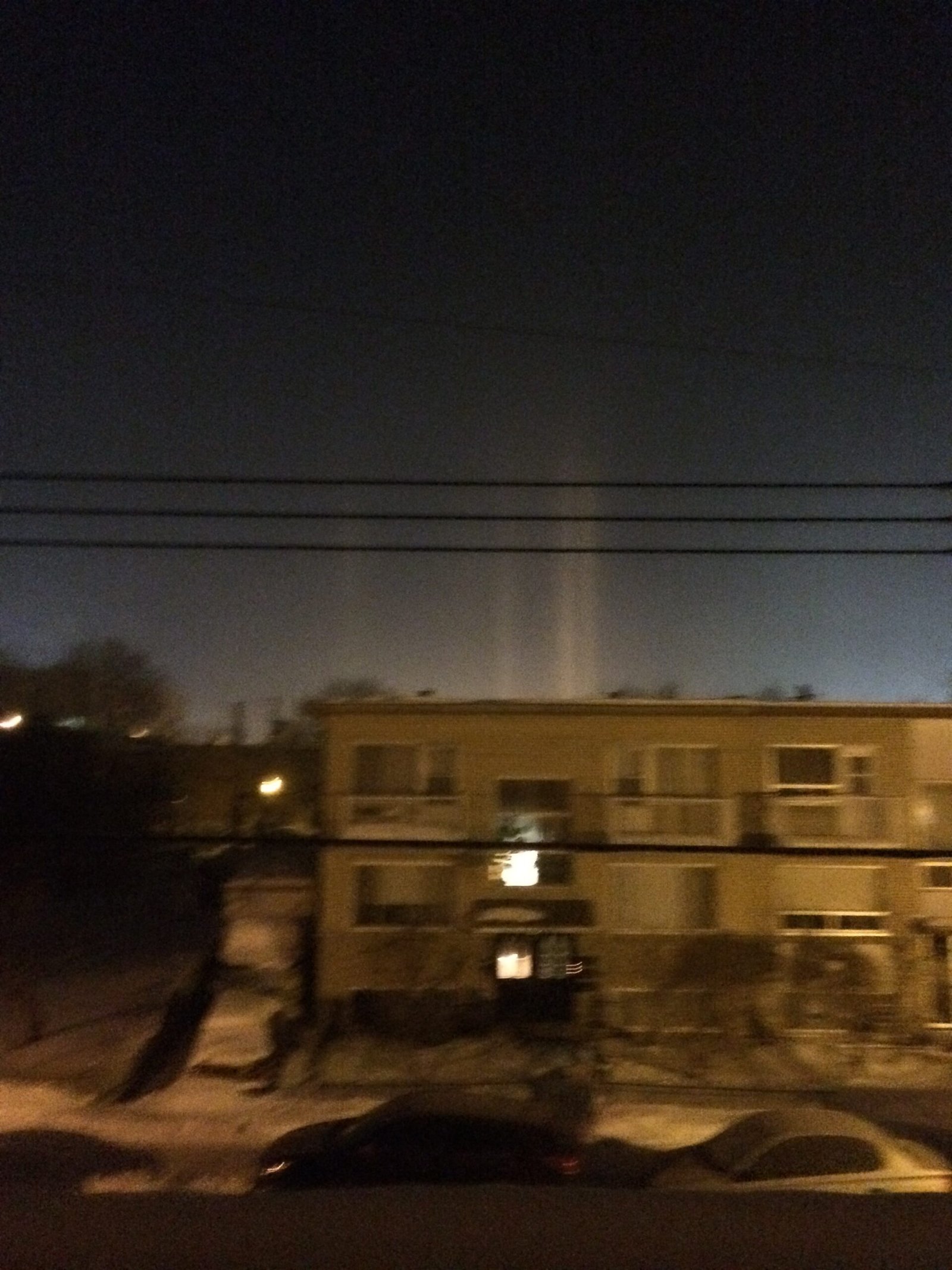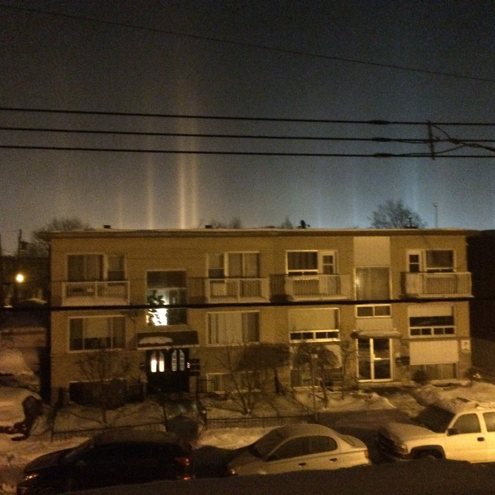 Le 8 janvier 2017, à 3h05, trois témoins ont observé un phénomène lumineux dans le ciel au-dessus de Montréal-Nord. Les témoins ont rapporté la présence de plusieurs faisceaux lumineux non identifiables, qui apparaissaient verticaux et allongés. La taille des faisceaux variait, le plus gros mesurant approximativement la taille d’un œuf, tandis que les autres avaient des diamètres changeants.
