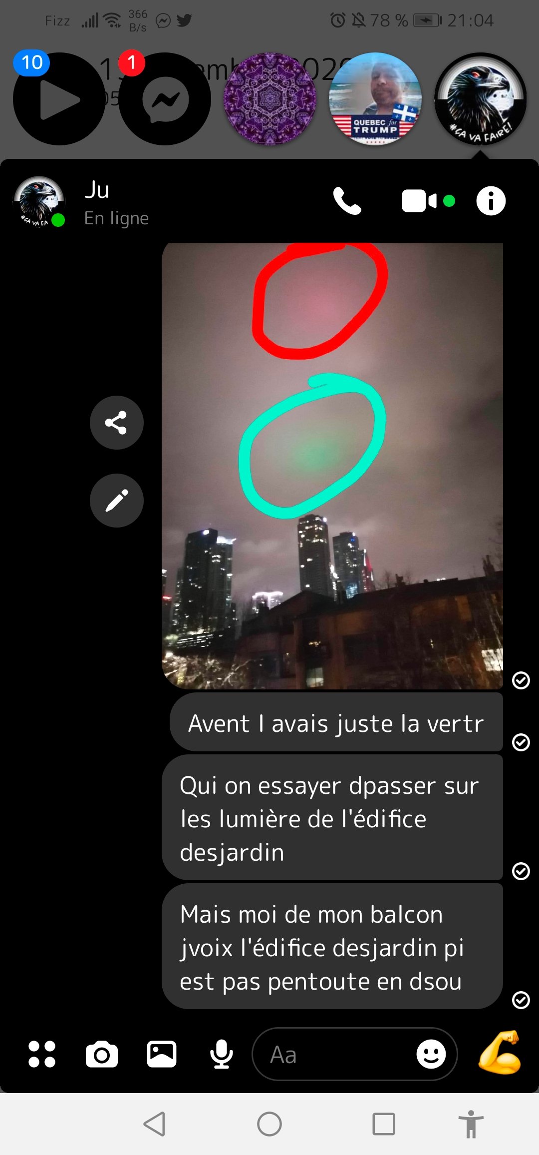 Le 12 décembre, un témoin a observé une lumière rouge apparue soudainement dans le ciel nocturne, dans le centre-ville près de Bonaventure. Cette lumière a été photographiée, et les images montrent une intensité notable. Le témoin a également mentionné une lumière verte persistante, qu’il attribue au complexe Desjardins, mais il souligne qu’il ne peut pas prouver cette hypothèse pour la lumière rouge.La lumière rouge semblait se situer à une altitude où les lumières des bâtiments sont souvent visibles, mais le témoin n’a pas pu identifier de bâtiment spécifique comme source de cette lumière. De plus, il a noté que la lumière rouge restait toujours au même endroit dans le ciel, ce qui soulève des questions sur sa nature. La lumière verte, quant à elle, est associée à des reflets ou des projections provenant du complexe Desjardins, mais le témoin n’a pas pu établir un lien direct avec la lumière rouge observée.