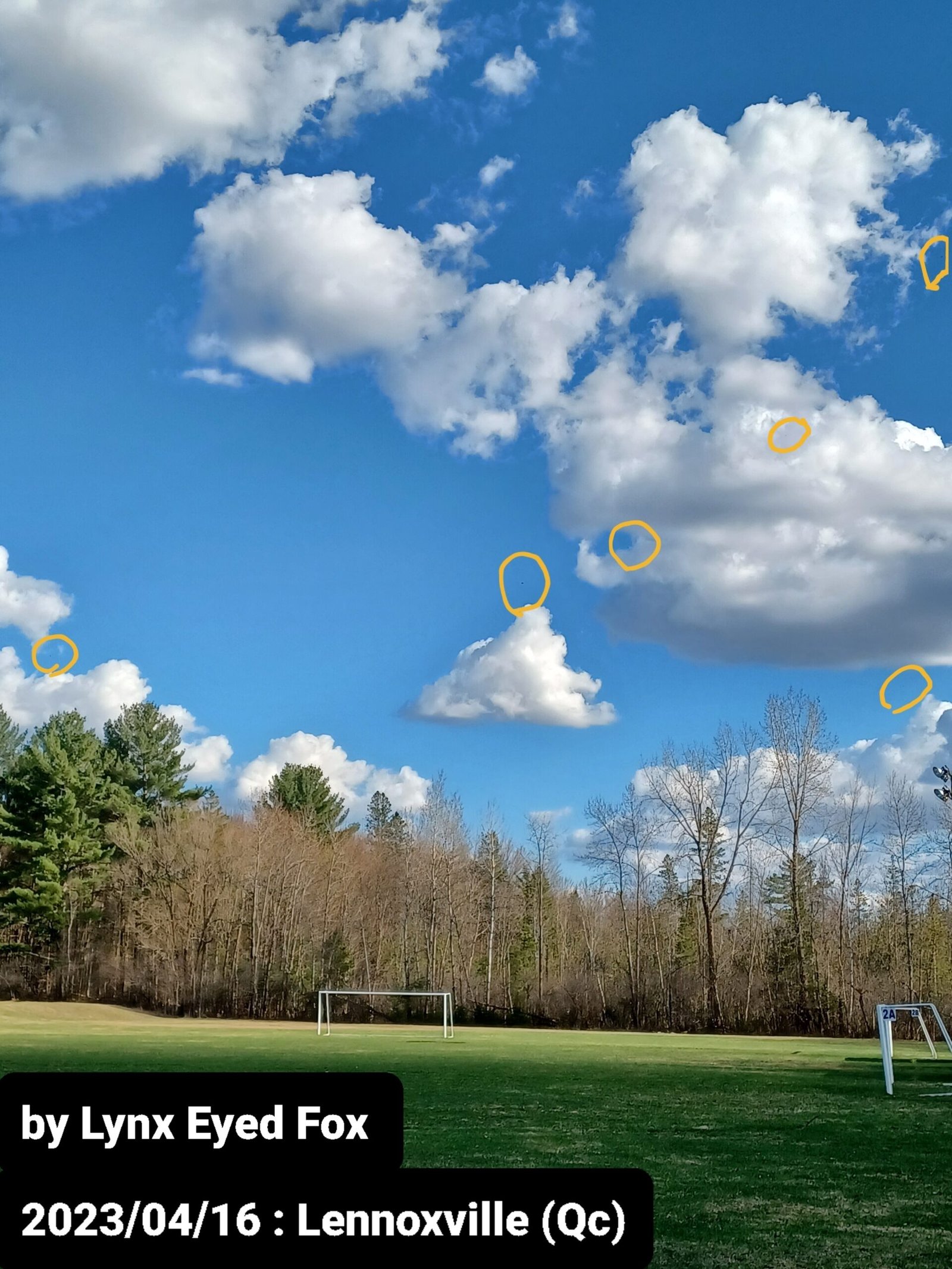 Originaire du Canton de Hatley, le témoin a mentionné qu’il n’était pas surpris par cette observation, ayant été témoin de phénomènes similaires depuis son enfance. Il a précisé que ce n’était pas la première fois qu’il voyait de tels objets dans la région, mais que les autres observations avaient été trop rapides pour qu’il ait le temps de sortir son téléphone. Selon son expérience, ces objets ne semblaient pas hostiles, mais plutôt curieux. L’observation a eu lieu à Lennoxville, Sherbrooke, au Parc Atto-Beaver, le 16 avril 2023 à 16h45. Le témoin a décrit l’objet observé comme étant de forme ronde, de couleur noire à semi-transparent, et a signalé qu’il n’y avait qu’un seul témoin de cet événement.