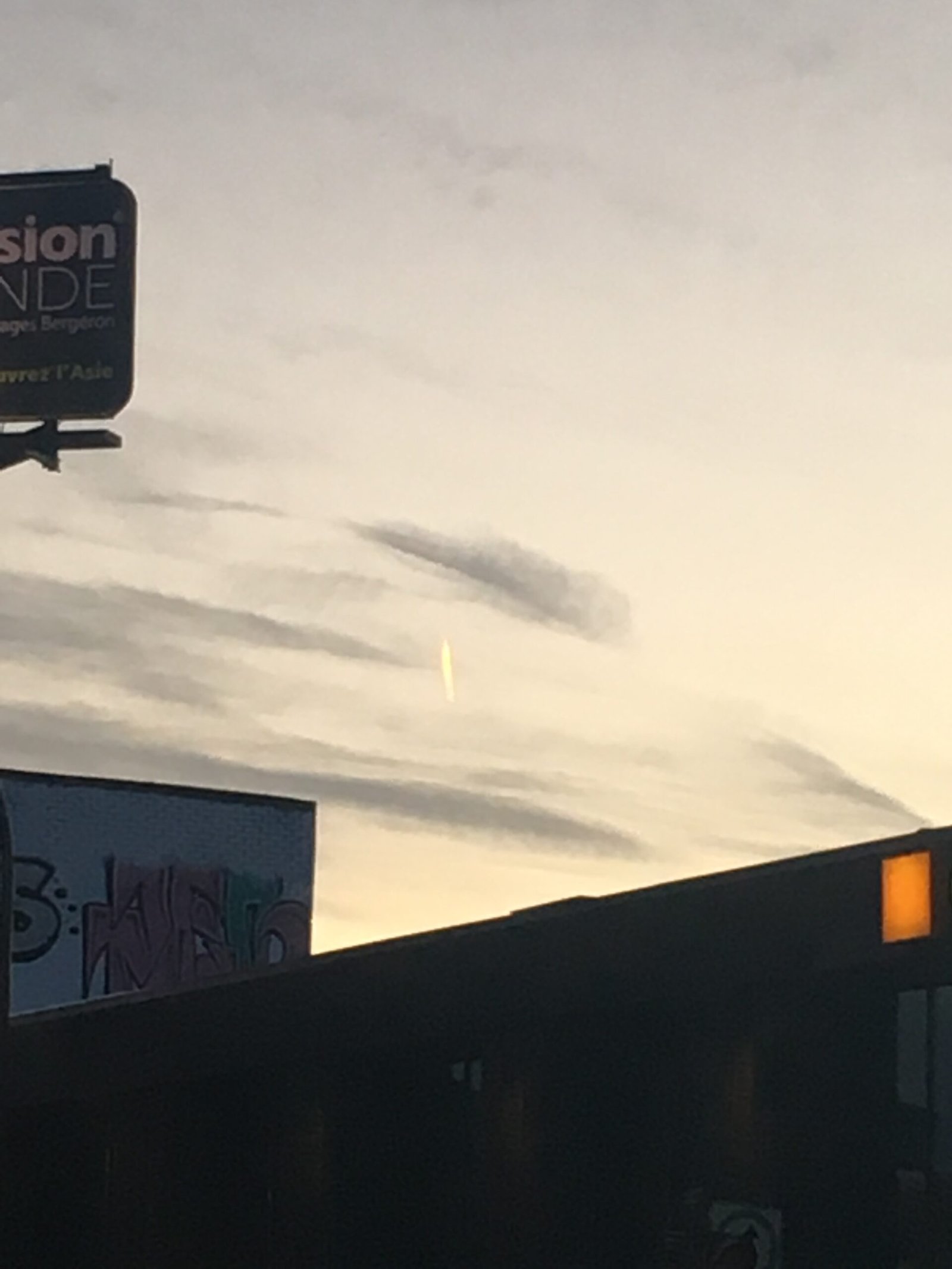 Les témoins ont poursuivi leur observation tout en marchant vers l’ouest sur la rue Jean-Talon. À ce stade, l’objet se déplaçait vers le sud, et ils ont finalement perdu de vue l’objet en raison de sa distance. L’objet était estimé à environ 1000 mètres de distance, et bien que difficile à évaluer en raison de cette distance, il était très visible. La vitesse de l’objet a été jugée légèrement inférieure à celle d’un avion à haute altitude. Au total, deux témoins ont observé cet événement.