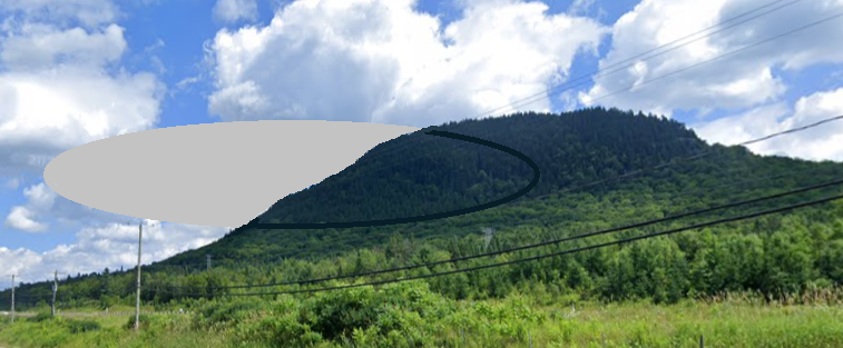 Alors qu’ils circulaient sur une section droite de la route, une montagne, distincte des autres par sa forme particulière en pente de 45 degrés, se profilait devant eux. Au fur et à mesure qu’ils s’approchaient, un objet ovale de couleur gris métallique a attiré leur attention. Cet objet, qui semblait stationné derrière la montagne, dépassait de celle-ci à une hauteur telle qu’il ne touchait pas le sol. Sa taille, comparée à celle de leur véhicule, était impressionnante, étant plusieurs fois plus grande.