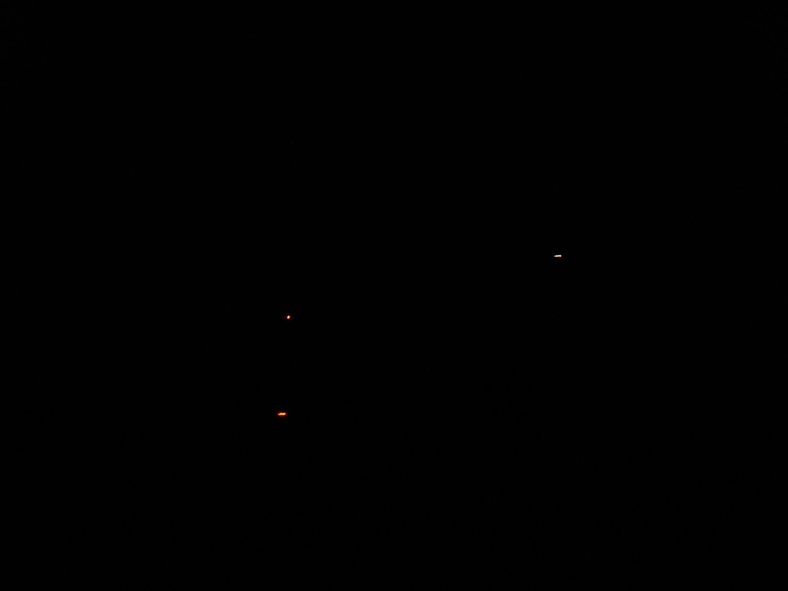 À ce stade de l’observation, l’objet se trouvait à gauche de l’antenne par rapport au point d’observation du témoin. Malgré les difficultés techniques, il a réussi à prendre plusieurs photos, tant avec zoom qu’en mode normal, ainsi que deux courts extraits vidéo. L’observation a duré environ 30 minutes. Le témoin regrette de ne pas avoir filmé plus longtemps, car l’objet a ensuite traversé la rivière et a survolé le chalet. À ce moment-là, il avait l’apparence d’une étoile brillante, se déplaçant à une vitesse constante jusqu’à disparaître de la vue, quelques secondes après avoir atteint le zénith du témoin, qui se trouvait en forêt.