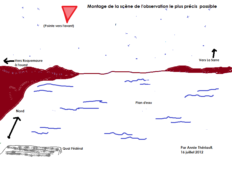 L’avion a ensuite poursuivi sa route vers l’ouest, atteignant Roquemaure en environ trois minutes. À ce moment-là, le point rouge réapparut, se transformant en un triangle rouge qui venait du nord. Ce triangle a rapidement suivi la même trajectoire que l’avion, disparaissant à nouveau après quelques secondes. Peu après, l’avion est revenu à une altitude plus basse, et le triangle a réapparu, répétant ses manœuvres de descente avant de disparaître une nouvelle fois. Le CF-18 a continué à patrouiller dans le ciel jusqu’à 2h00 du matin, tandis que les témoins, après avoir observé l’événement, ont décidé de rentrer chez eux. Plus tard dans la nuit, deux autres CF-18 sont arrivés pour continuer à surveiller la zone.