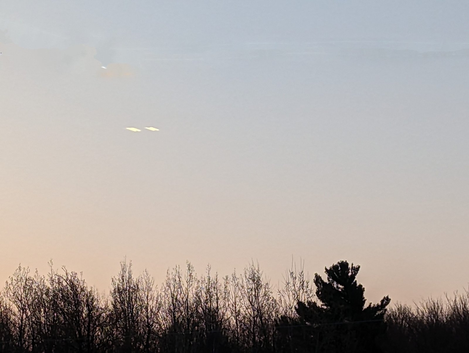 Le témoin a remarqué deux gros objets en forme de triangle, brillants et d’une couleur blanche très éclatante, flottant dans le ciel. Un troisième objet, plus petit, était en retrait, positionné plus haut et plus loin que les deux premiers. L’absence de bruit a été particulièrement notable, ce qui a renforcé l’étrangeté de l’événement. En une fraction de seconde, les objets ont disparu, semblant s’évaporer comme un éclair.
