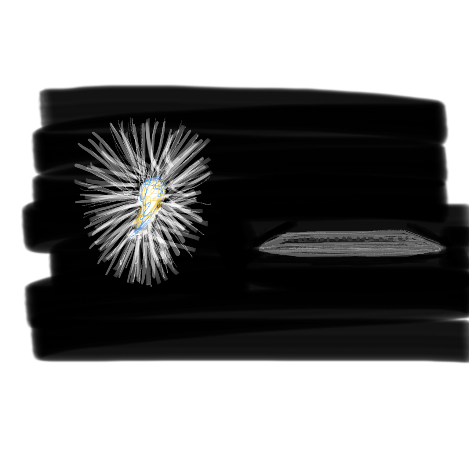 Avec les lunettes, ils ont pu discerner plus clairement un vaisseau ovni qui se trouvait à proximité de la source de lumière. Le vaisseau, de forme allongée et de couleur grise, présentait de petites fenêtres, ce qui a permis aux témoins de l’identifier comme un objet distinct des nuages environnants, qu’ils avaient d’abord pris pour un simple nuage gris. Pendant une période d’environ 30 minutes, les deux objets ont été observés. La lumière est restée constante et très intense, tandis que le vaisseau est demeuré immobile à sa place. Pour immortaliser ce qu’ils voyaient, le témoin a décidé de réaliser un dessin sur sa tablette, en raison de l’impossibilité de prendre des photographies.