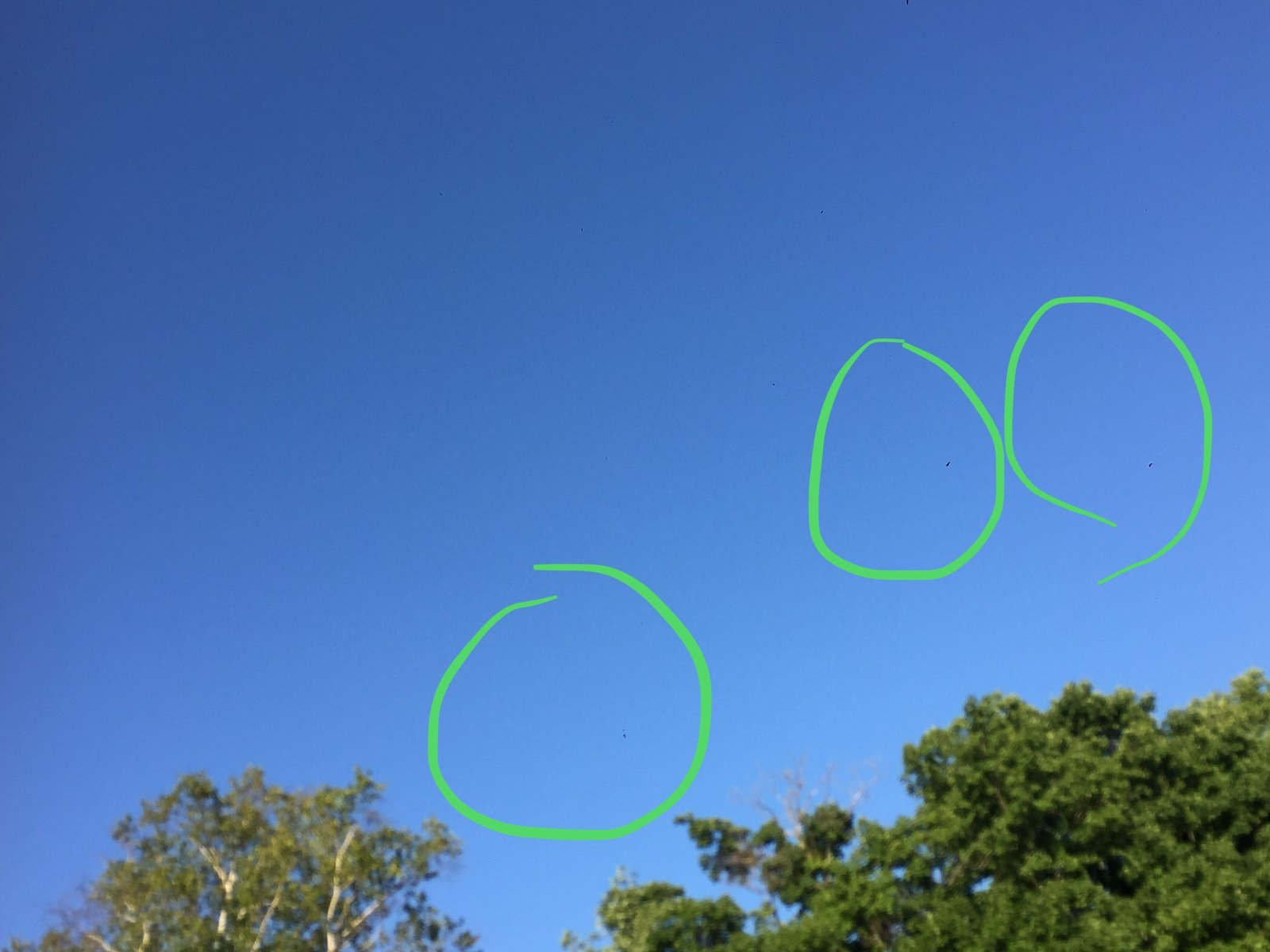 Des photos prises lors de l’incident montrent la présence de plusieurs appareils, dont certains apparaissent noirs et un autre de couleur mauve. Le témoin se demande si la couleur blanche des deux premiers objets n’était pas simplement due aux reflets du soleil sur ces appareils, suggérant une possible illusion d’optique. En continuant à observer, le témoin a vu deux objets plus gros, en forme d’obus, qui semblaient tomber du ciel comme s’ils avaient été largués d’un avion.