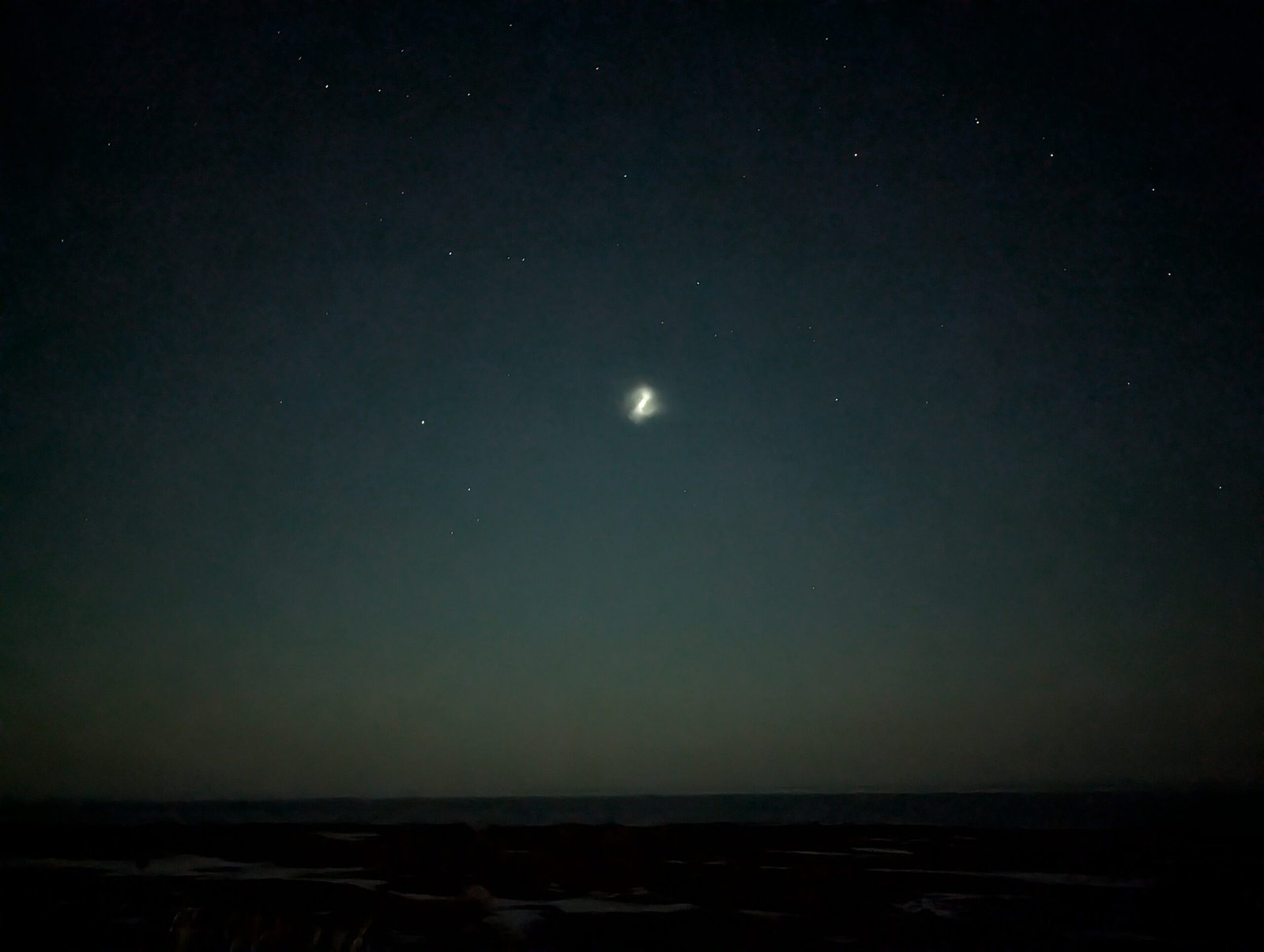Au fur et à mesure que l’objet se déplaçait, il a commencé à devenir plus flou, prenant l’apparence d’un anneau de nuages de la taille d’une pleine lune. Le halo lumineux s’est progressivement estompé, jusqu’à disparaître complètement. Le témoin a noté que l’objet se trouvait à une distance comparable à celle d’un avion, se situant entre l’horizon et la constellation de la Grande Ourse. La vitesse de l’objet était estimée à environ la moitié de celle d’un avion. Deux témoins ont assisté à cette observation, partageant un moment d’étonnement face à ce phénomène lumineux singulier.