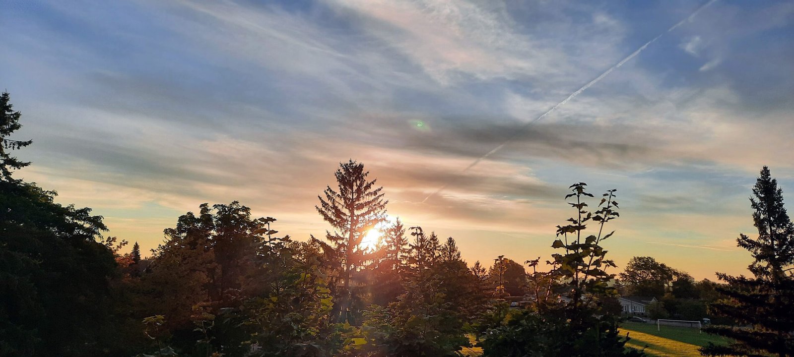 Sur la première photo, le ciel apparaissait normal, offrant une belle vue du lever du soleil sans aucun élément inhabituel. Cependant, sur la deuxième photo, prise immédiatement après la première, un point vert fluorescent était clairement visible à proximité de la trace laissée par un jet. Ce point, décrit comme rond, émettait une lueur verdâtre entourée de lignes blanches verticales. Le témoin a noté que cet objet semblait stable et qu’il n’avait aucune explication quant à sa nature.