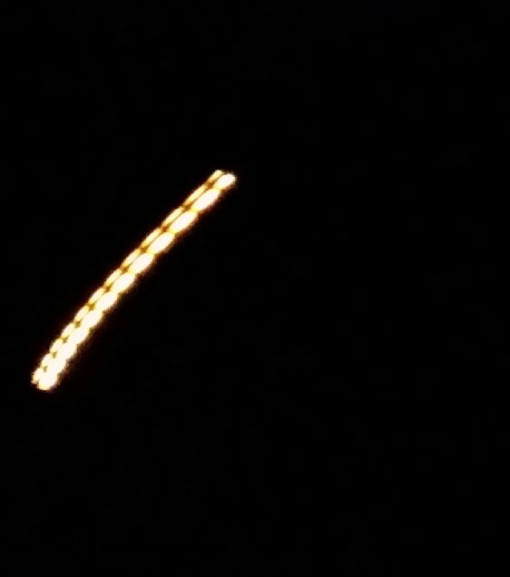 Environ cinq secondes après l’apparition des deux premières lumières, une troisième lumière est apparue, rejoignant les deux autres dans le ciel. Les témoins ont noté l’absence de bruit pendant toute la durée de l’observation, ce qui a ajouté à l’étrangeté de la situation. Alors que les trois lumières se déplaçaient ensemble, une ligne de lumière s’est soudainement formée, avant que les objets lumineux ne disparaissent complètement, laissant les témoins perplexes face à ce phénomène. Les lumières étaient de couleur blanchâtre et ont été observées dans un ciel dégagé, sans aucune autre source lumineuse susceptible de les confondre.